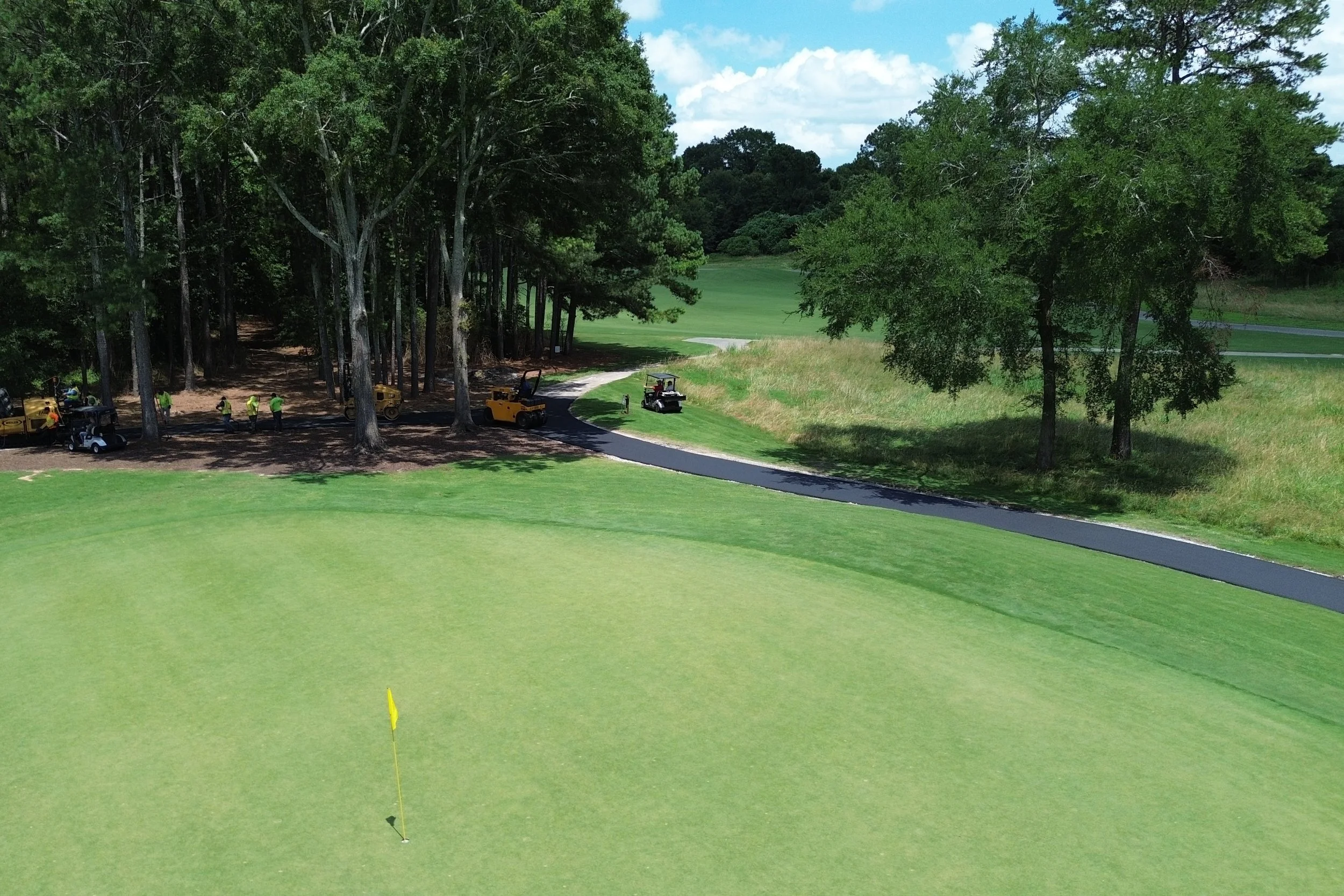 We have years of experience removing, repairing, and installing new cart paths as well. Cart paths get a lot of use, and natural wear and tear can cause potholes, loose gravel, cracks, and other safety concerns. Sections of remove & replace asphalt work to extend the life of your current path system. We can also help with the entire process of expanding your cart paths should you want to add new sections — from dirt grading to gravel placement to paving, Big Apple Services has you covered.