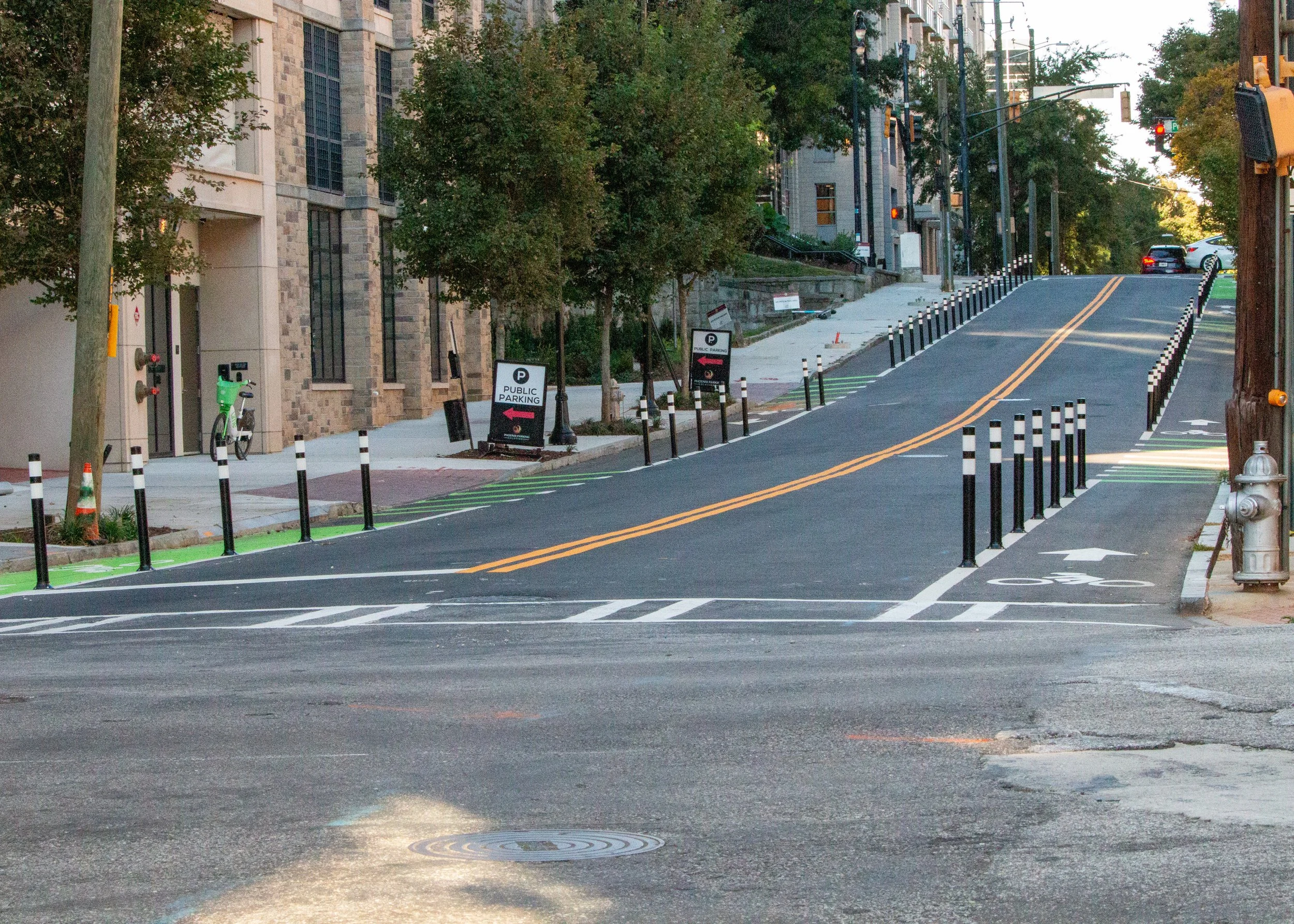Delineators are used for traffic guidance rather than blockage. In contrast to a bollard, delineators are made of plastic and will not stop an oncoming vehicle. They are used to indicate where lanes merge or separate, to mark boundaries where visibility may be a challenge or where it is unclear where a driver should be driving. Delineators feature highly-reflective surfaces to increase visibility.